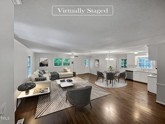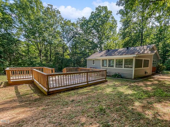 Tucked away on a private and wooded 1.54 acre homesite, this ranch-style residence offers luxury vinyl flooring throughout it's main living spaces and bathrooms, all set on a partially fenced property. The kitchen offers crown molding, chair-rail, white painted cabinets, and stainless steel electric smooth top range/oven, built-in microwave and dishwasher. Owner's retreat with brushed nickel ceiling fan with globe light adjoins the owner's bath with luxury vinyl flooring, walk-in shower, and single vanity with white cabinets and cultured marble countertops. A large sunroom overlooks the sprawling back yard with a spacious deck that's perfect for entertaining. The family room with crown molding, seamlessly flows into the dining area and kitchen, creating an open and inviting space. Additional storage can be found in the large laundry room with painted white wall cabinets.