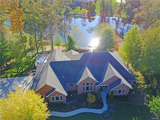 Amazing custom brick ranch on 17 acre lake setting. Attention to detail throughout with generous sized rooms & every amenity. 9 & 10 ft ceilings, expansive lake views & incredible entertaining space on both levels. The inviting kitchen has a center island, prep sink, quartz countertops, planning desk, bayed breakfast room with gazebo ceiling open to the hearth room with beautiful builtin cabinetry. Double doors to the master suite with dual walk in closets with organizers & luxury bath with whirlpool, separate shower & split vanities. The open staircase leads to amazing space with impressive wet bar, corner fireplace flanked by built ins, family & game rooms, bedroom suite & a 4th bedroom with bath. Breathtaking views from every window. Walk out to a brick patio, extensive landscaping & brick walkway to private dock. Pluses include stairs from the garage to the basement, zoned HVAC, dual water heaters, irrigation system (fed from the lake), security system & central vac. Wow!