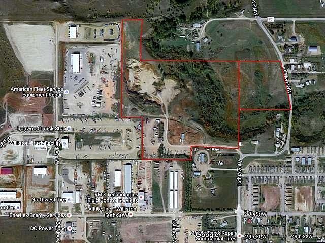 56 ACRES FOR SALE IN WILLISTON. INCLUDES SAND & GRAVEL PIT WITH POTENTIAL PIT EXPANSION. HEATED 40 x 60 SHOP WITH RADIANT FLOOR HEAT, OFFICE AND LIVING QUARTERS. DESIGNATED LARGE TRUCK PARKING, MANUFACTURED HOME, PLUS ADDITIONAL BUILDINGS. GREAT LOCATION LESS THAN 2 MILES WEST OF WALMART SUPERCENTER. Currently zoned Ag/Residential. Buyer to verify zoning. Information deemed reliable but not guaranteed buyer to verify all.