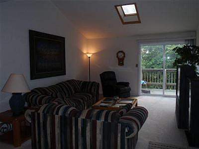 Deluxe condo in beautiful Tall Trees Community/2 bdrms + 2 baths/1 yr home warranty/Cathedral Ceilings/Skylight/Huge master bdrm suite/All kitchen appliances stay/Private entry/Newer heat pump and AC/Wooded deck setting/