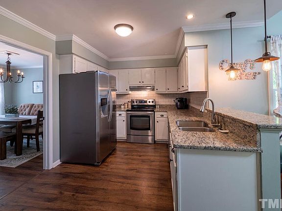 Location!! Wonderful 3 BR 2.5 BA home w/additional bonus space on wooded lot in the highly desirable Woodcroft neighborhood! Updated & upgraded w/new wood flrs throughout 1st flr. Freshly painted interior & Smooth Ceilings. Updated kitchen with refaced white cabinets, granite counters, fixtures & lighting. Additional bonus space(not counted in total sqft). Community pool, clbhse, plygrnd & walking trails. Convenient to South Point Mall, Duke, UNC, & RDU. Roof 2013, Wtr heater 2017. SEE VIDEO WALK-THROUGH