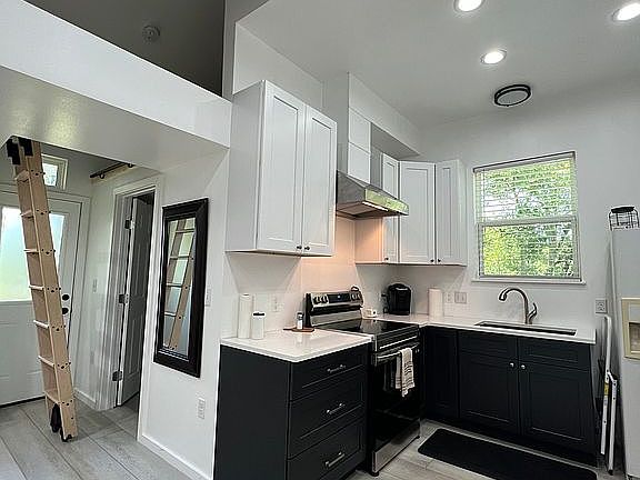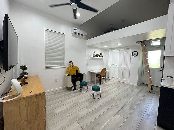 Tiny home in back yard behind original home. Separate stand alone tiny home. Lots of outdoor green space. Separate porch entrance, laundry facilities, shared grill. Tiny home is open floor plan with two separate loft space for sleeping. Full kitchen & full bath. Ideal space for 1 or couple wanting green space and quiet. Best location in east austin. Mini-split unit gives plenty of AC and heat when needed. Dedicated hot water headed for tiny home. Washer & dryer located on back semi -enclosed porch.