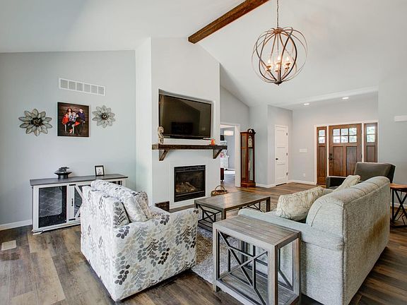 New construction without the wait! Located in the coveted New Prairie School District, this stunning 4 acre property has it all. The thoughtfully designed property has maximized every inch of living space to create a welcoming environment for everyone. On the main level you are greeted by the living room with vaulted ceilings, and gas fireplace. In the kitchen you will find ceiling height cabinets, quartz countertops, and stainless steel appliances. The main floor primary bedroom touts a spectacular en suite bathroom with soaker tub and double sinks. Also on the main level is the laundry space equipped with a convenient dog washing station and mudroom area with dedicated cubby spaces to drop off coats, boots, and backpacks! In the walkout basement, you will find an oversized recreation room ready for entertaining! Outdoors, equestrian enthusiasts will be thrilled to know that the property is deeded for two horses with access an ownership to pond in the rear of property.