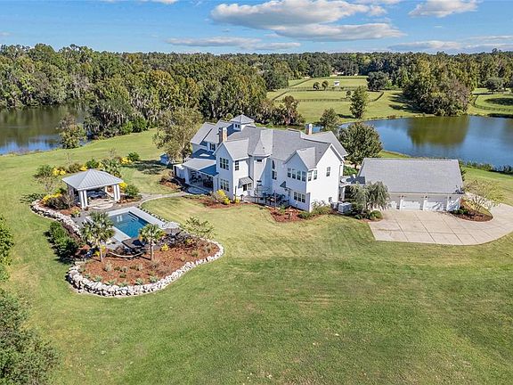 Welcome home to Estate Living at its Finest! This custom-built hidden gem boasts 5 bedrooms / 5.5 bathrooms with over 6900 square feet of living area, overlooks a 9-acre spring-fed pond, and sits on over 38 areas of meticulously kept grounds with rolling hills throughout. Entering the home your met with the great room showcased with patterned wood beam ceiling, wood burning stone fireplace flanked by French doors leading to the covered patio and open concept cabinets which provide a subtle separation to the other living areas. Rich brown-toned natural hardwood floors throughout the main floor blend each of the living areas seamlessly. The chef’s style kitchen features wood cream-colored cabinets with matching panel fronts for the fridge and range hood, granite countertops, Thermador Professional appliances include 6 burner gas stovetop, built-in double oven, warming drawer, fridge, 2 dishwashers and microwave. The functional island offers sink, storage, multiple serving areas and additional seating. Additionally, there is a large glass front cabinet with plate rack to display your special items, a second sink with pass-thru to El Fresco dining area with Travertine tile and separate large walk-in butler’s pantry. Two separate dining areas which both provide easy transitions to the kitchen and living areas. A secondary living area overlooks the front of the property and pond and highlighted by stone wood burning fireplace, creating a cozy comfy atmosphere. Primary bedroom located on first floor has private entrance with double doors, large bedroom with trey ceiling and French Doors overlooking the pond, 2 large walk-in closets with built-in dressers and open clothing cabinets. The en-suite primary bathroom is adorned with 2 separate vanity areas, oversized walk-in shower with bench, water closet and direct access to private outdoor shower. Completing the first floor is the office with double glass doors, gym, wine cellar with wine fridge, elevator and a robust laundry room with concrete counters, cabinets, sink, open office area and access to outside patio area, half bath with attached mudroom drop zone for pool. Second floor hosts 4 bedrooms and bathrooms all with walk-in closets (3 bdrms are en-suites), an open bonus room with kitchenette, hide-away office and multiple storage rooms and closets. Stepping outside to your backyard oasis you’ll discover the covered patio with Travertine tile, enhanced with pass-thru bar area with additional seating, fiberglass saltwater pool with sundeck, cabana with plank ceiling and lounging deck. The 8-stall equestrian barn is showcased with center-aisle, inside wash area, office and tack room, awnings for each stall window and caretaker apartment which is plumbed and ready for build-out. Outside wash rack, garden, 5 fully fenced pastures 3 with run-in buildings, well and septic and equipment garage. The 9-acre pond brings nature to you and creates a moat-like entrance after passing through the gate with 2 bridges to gain access to the home. Fish, relax or board your vessel for a trip around the pond from the covered dock and pier. 3 car rear facing garage with attic pull-down for additional storage, property is perimeter fenced, front porch and walk paths are Tennessee Flagstone.