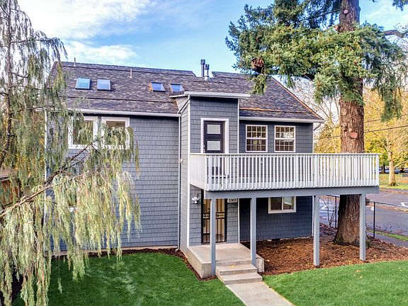 Beautifully Remodeled Lents Home on Desirable .13 Acre Corner Lot. Across from Lents Park! New berber carpet, hardwoods, interior and exterior paint, lighting. New Skylights! Spacious living room leads to open dining room. Gourmet vaulted kitchen with quartz counters, new steel appliances. Suite and 2nd bedroom on main. Vaulted Master bedroom up with new fireplace, walk-in closet and 4th bed. Detached garage and fully fenced yard. [Home Energy Score = 3. HES Report at https://api.greenbuildingregistry.com/report/pdf/R159286-20180411.pdf]