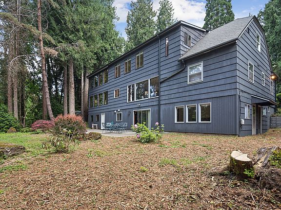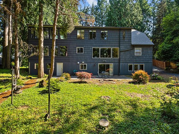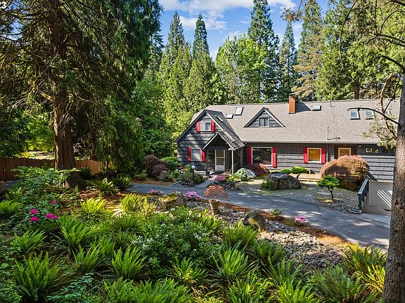 Open House 1-3pm Saturday 7/22.Nestled on over 4 picturesque acres this enchanting English lodge-style home is a true retreat. A circular driveway welcomes you, while offering convenience and practicality. Once inside, enjoy the walls of windows that invite abundant natural light in and showcase the surrounding natural beauty. The living room offers coved ceilings, an arch doorway, hardwood floors and a fireplace to cozy up to on our cool NW nights. The kitchen is spacious with lots of cabinetry and counter space, two ovens and an eating area. Soaring ceilings in the dining room open up to the loft family room off of the primary suite. With 5 bedrooms-2 on the main level, 2 on the lower level, and the magnificent primary suite upstairs with vaulted ceilings and a wall of windows, there is generous space for relaxation and rejuvenation.There are 3 family rooms with one on each level. Hardwood floors, double staircases, beamed and soaring vaulted ceilings, new carpet and a new roof are just a few of the features of this home.Beyond the walls of this extraordinary home lies a nature lover's paradise. With majestic trees, vibrant ferns, and the soothing sounds of a nearby creek, the features also include a serene pond, adding to the tranquility and providing a peaceful oasis right in your backyard. Crossing the bridge you will discover that beyond the creek lies an old barn with an large sunny meadow, offering lots of space to live your dream. Room for a horse(s), barn, shop, gardens, orchard or simply enjoying the natural beauty of the surroundings. This great location is a short distance to travel to Portland, PDX, the Willamette River, horse back riding in the park nearby, the community center, schools and shopping, yet feels a million miles away. Immerse yourself in the idyllic setting to embrace a harmonious blend of nature, history and timeless charm.