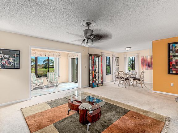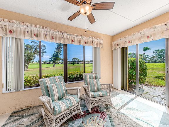 Rare find - 3 bedroom, 2 bath, 1st floor, corner unit in Miles Grant. Newer carpet in living area and bedrooms. Huge walk-in master closet. Accordion shutters on all windows. Views of the 6th fairway. Existing furniture included in sale. 55+ community with mandatory social membership $1,860 per year and $350 per person food and beverage minimum. No trucks, motorcycles or pets permitted. No lease for the first year. Golf and tennis memberships available.