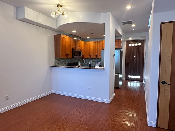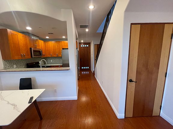 MOVE-IN SPECIAL $1,000 OFF FIRST MONTH RENT WITH 12 MONTH LEASE BEGINNING NOVEMBER 1, 2025. In the vibrant NOHO Arts District is a freshly painted charming 3 bedroom & 2.5 bath townhome. Included is a brand new LG 77" Class OLED evo AI 4K C5 Smart TV mounted to living room wall, stainless steel refrigerator, stainless steel dishwasher, stainless steel stove, stainless steel microwave, and new in-unit stackable white LG washer/dryer. Two floors with hall skylight providing natural light. The house has wood floors with artisan charm throughout. Google Nest Thermostat connects and controls Central Air-Condition/Heat. Garage secured tandem parking for two included with one EV ChargePoint Charger. HOA has a nice community room that can be reserved for special events. Location is super convenient with walking distance to supermarkets, restaurants, gym, nightlife, theater/studios, and NOHO Art Park Bike Path. Universal Studios, major studios, and the Bob Hope Burbank Airport are minutes away.