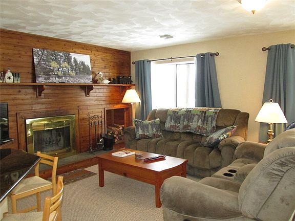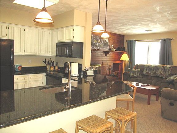 SKI IN SKI OUT Summit 2 bed, 2 baths, renovated condo!! Granite kitchen counter tops, upgraded kitchen appliances, hardware, lighting, newer water heater, carpet, & vinyl too. Kitchen counter top is extended & allows for extra seating. Easy for a quick bite to eat or a super buffet set up! New energy efficient windows have been ordered & will be installed. Living room has knotty pine accent wall centered with wood burning fireplace. There’s even a built in wood storage bin. Dining room table has an extra board to fit more hungry people! Master bath has 2 sinks, jetted tub with mirrored walls & a separate shower. Master bedroom offers a walk in closet. Property is being sold with furniture, accessories, & appliances including a stack washer & dryer. Step off of your back deck & you are skiing, hiking, biking or walking the dog! There’s a locked storage unit in the basement for all of your four seasons gear, think skis, snowboards, golf clubs. Seller is offering a one year home warranty.
