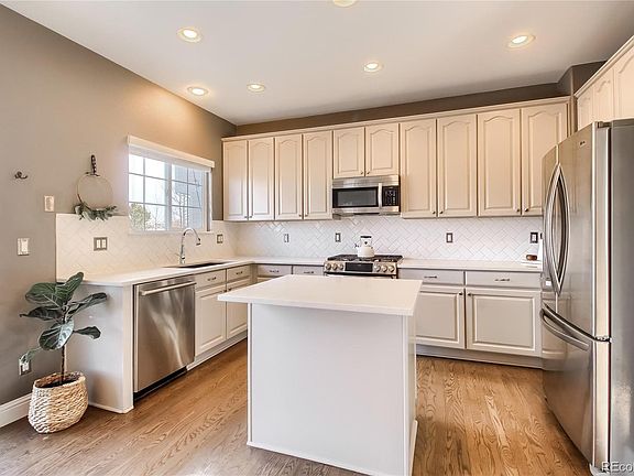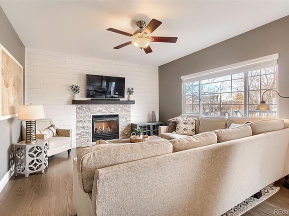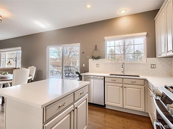 Welcome to this charming beautifully updated home. Upon entering you're greeted with flowing hardwood floors and vaulted ceilings. The chef in your home will love cooking in this updated kitchen with stainless steel appliances, quartz countertops, newly updated cabinets, herringbone tile backsplash, under-mount sink, double ovens, island, and breakfast nook. Cozy up in the family room next to the gas fireplace with stone surround, wood mantel, and shiplap accent wall. The main level is complete with a dining room with chair rail, laundry room, guest bedroom/study, and powder room. The upstairs boasts the master suite which is the perfect place to unwind after a long day with his and hers walk-in closets and a beautifully updated ensuite bathroom with a large stand-alone tub, walk-in shower, and dual vanity. The upper level is complete with three additional bedrooms and another updated full bathroom. The finished basement hosts an additional bedroom/flex space, 3/4 bathroom, and storage area. The fully fenced private large backyard is the perfect spot for summer BBQs with a large new Trex deck, dog run, and shed. Parking is easy with the attached 2 car drywalled garage with a service door. More perks of this home include newer interior paint, Nest thermostat, updated lighting, newer blinds, and a new roof. Easy access to DIA, Denver, and Boulder. This fabulous remodeled home could be yours!