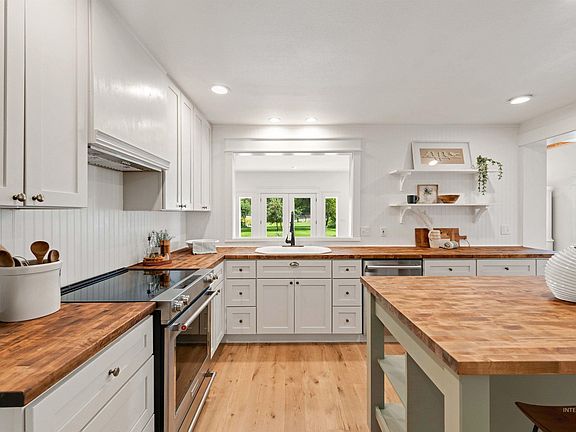 Nearly an acre along the Boise River, Heron Hollow Homestead is an exceptionally rare homestead in the city. This expanded 1935 farmhouse spans 3,311 sq ft, with 5 bedrooms, 4 baths, an office/den, formal living room, and a great room. French doors, solid oak floors, custom cabinetry, and built-ins infuse the home with character. Outside is where true freedom unfolds: a fruit orchard, berries, asparagus patch, chicken coops, and room for more—plus a tributary that leads directly to the river and one of the most magical stretches of the Boise Greenbelt. Picture shaded trails, swimming holes, wildlife, and easy bike access to downtown, the zoo, and Esther Simplot Park. A private well, generous garage with workshop bay, and a welcoming porch complete the offering. No HOA restrictions—just open space, natural beauty, and a self-sustaining legacy lifestyle in the heart of Boise.