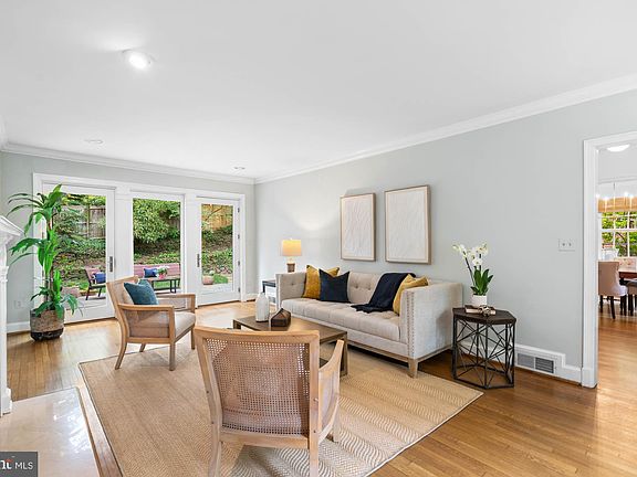 Lovers of classic crown molding, painted banisters, and the quiet dignity of a true center hall Colonial will immediately feel at home at 5304 Blackistone Road. Your first backyard dinner party under the twinkling café lights is only a few weeks away. A six-bedroom home, expanded and updated throughout with classic and traditional details, harmoniously designed to take advantage of every inch of functional space both inside and out. Like something from a movie scene, you can picture holidays and events, dinner parties intimate and grand, cozy rainy nights around the fireplace, and summer evenings dining al fresco on the terrace. This six-bedroom, four-and-a-half-bathroom home stands out with its covered front stoop, spacious rooms, hardwood floors, recessed lighting, and elegant crown molding. Featuring 4,600 +/- square feet on four levels with a traditional floor plan and excellent flow. A sun-filled, spacious living room is anchored by a fireplace with decorative mantle, gracious, oversized windows, and glass doors to the rear terrace and beyond to the fenced-in backyard. The family room offers built-ins and a window bench with storage, as well as floor-to-ceiling windows and glass doors to a captivating screened-in porch, while the formal dining room boasts crown moldings and original built-in china cabinets. The heart of the home is the spacious kitchen that offers room to lounge or dine, surrounded by a wall of windows, a center island with a breakfast bar and prep sink, and a suite of stainless steel appliances. Guests spill out to the back terrace for gatherings around the outdoor fireplace. The second floor is highlighted by the primary suite, featuring a dressing room, custom dual walk-in closets, and an en suite bathroom. A private sitting room off the primary bedroom boasts 12-foot cathedral ceilings and skylights, flooding the space with natural light. Two additional bedrooms and a full bath complete the second floor. A dedicated staircase leads to the spectacular third floor, which features two sizable bedrooms—each with walk-in closets and skylights—plus a Jack-and-Jill bathroom. There is also attic space for ample storage. The lower level of the home includes a guest bedroom, another full bath, a recreation room with a fireplace, a laundry/storage room and a bonus gym or hobby space. This exceptional home also boasts an attached garage and a private driveway Steps to the Capital Crescent Trail, Little Falls Park, and Westmoreland Park, 5304 Blackistone Road provides an ideal connection to the trails and parks of Bethesda. This spectacular residence offers tranquil living while being close to both Spring Valley and Westbard Square shopping districts, the Metro, downtown DC, and Bethesda. Westbrook, Westland, B-CC schools serve the neighborhood. Timeless, inviting, and impeccably maintained, this home is truly one for the ages.