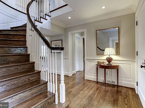 Exquisitely renovated & expanded by Gibson Builders and GTM Architects in 2009, this gracious brick Colonial in sought after Westmoreland Hills is situated on a 25,567 sq ft professionally landscaped lot offering privacy and views of the Dalecarlia Reservoir. This beautiful home features 5 bedrooms and 5 full baths and 2 half baths, high-end finishes and custom cabinetry throughout, top of the line appliances & fixtures. Gourmet kitchen with white Carrera marble counter tops & back splash, center island, Wolf Range with 6 burners, grill and griddle, Sub-Zero refrigerators and large two-zone wine refrigerator, as well as two dishwashers. Kitchen opens to large Family room with coffered ceiling, gas fireplace, built-ins and French doors to covered porch. The covered porch is a special feature which offers great space for outdoor dining, family living and entertaining. The elegant, large master suite with sitting room & two walk-in closets has a luxurious white marble bathroom with heated floor, built-ins, Waterworks fixtures, double vanity, steam shower, Bain Ultra bubble tub and separate water closet. Additional features: paneled library; sunroom; 2nd floor home office with built-in desk and file cabinets; exercise room with gym flooring, mirrors and mounted TV; 2 car garage; ceiling speakers throughout, underground irrigation system and outdoor landscape lighting plus generator. This house is in excellent condition!Owner/Agent