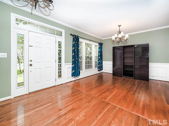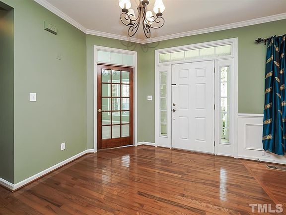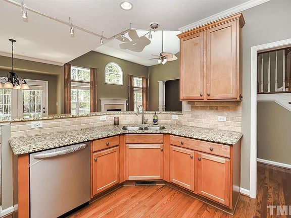 BEAUTIFUL, well maintained home with HUGE yard, gorgeous landscaping and plenty of deck and patio space to entertain! Wooded in back for added privacy on more than half in acre in APEX! Spacious 1ST FLOOR owners suite, hardwoods thru-out foyer, kitchen, breakfast, & dining. Kitchen features granite countertops, beautiful backsplash and a new dishwasher. Large oversized family room with palladium windows and Gas FP. HVAC replaced in 2014, 2015. Fresh int. paint. Wrap around front porch. Don't miss out!