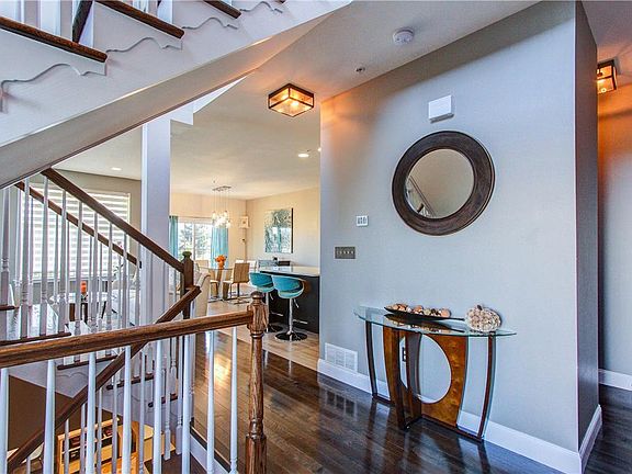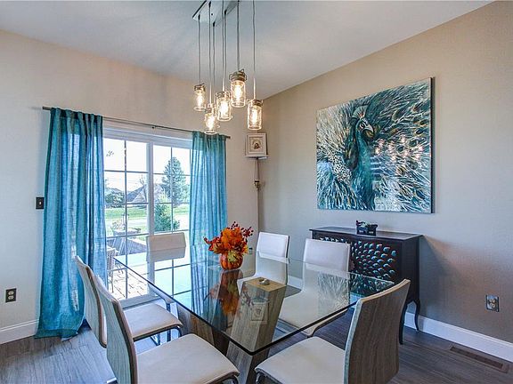 This stunning end unit in Spring Ridge Crossing boasts class & upgrades. Walk in to the foyer using the gorgeous custom door,hardwood floors glisten & flow into the family room which offers a cozy gas fireplace w/ stone & barnwood mantle. Head on to the open concept kitchen w/ quartz counters, glass tile backsplash, stainless steel appliances,island,gas stove,deep dual sink,custom cabinetry,& tile flooring. Hardwood stairs to the 2nd floor, hardwood floors from the hallway space into the master suite.The master suite, has a balcony (the views!), bathroom, & walk in custom closet system. 2 additional large bedrooms, bathroom w/ upgraded tile flooring, & second floor laundry. Stone patio w/ lamps/lighting. While outside notice the .37 acre lawn has been serviced by Tru-Green and is a landscapers dream. 2 car garage,fully finished basement, water soft.,a humidifer,& recessed lights w/ dimmers.