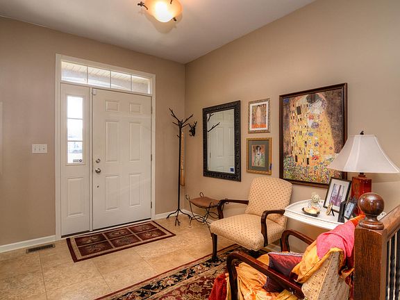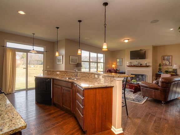 Handsome Ranch available. Wide plank wood floors, dramatic hand-scrapped 9ft Hickory doors throughout. Open concept living space is achieved here. Living room has gas fireplace. Granite Kitchen opens to Living room & Dining room. Owners suite on one side of the house, bedroom number two on the other for the ultimate in privacy. Well-appointed kitchen is fully applianced. Granite Breakfast bar, pantry, cabinets everywhere. Owners suite bath has tub, separate shower, dual vanity, walk-in closet. Wide open ranch basement could easily double living space. Neighborhood is serviced by city water and sewer. Sidewalks and street lights throughout subdivision.
