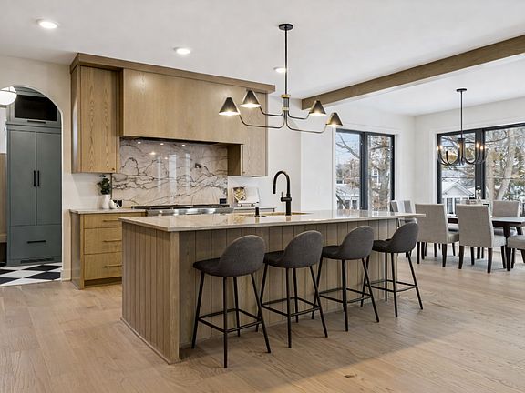 Stunning 5BR/5BA home built in 2024 in highly sought-after Todd Park neighborhood just blocks from Interlachen CC. This home seamlessly blends elevated design, exceptional craftsmanship, and everyday comfort. The open-concept main level is flooded with natural light and features a gourmet eat-in kitchen with premium finishes, a butler’s pantry, private office, and a spacious living room with custom built-ins framing a stone-faced gas fireplace. An oversized mudroom with lockers and seating keeps daily life organized. Upstairs, you’ll find four generously sized bedrooms – each with walk-in closets and direct bathroom access – along with a laundry room and versatile loft space. The luxurious primary suite offers dual closets, double vanities, and a beautifully appointed en-suite bath with striking tile and fixtures. The lower level is ideal for entertaining, featuring a wet bar, expansive family room with gas fireplace, fifth bedroom, ¾ bath, and flexible bonus space. Enjoy outdoor living on the new deck overlooking a large, fully fenced backyard, plus the convenience of a rare 4-car heated garage. With timeless style, numerous upgrades, and uncompromising quality throughout, this exceptional Edina home is truly a must-see.
