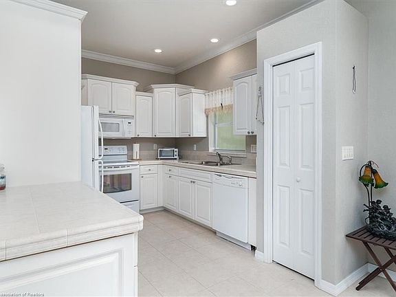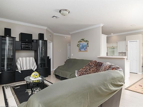Situated on almost a 1/2 acre lot, with a private backyard, this lovely 3 bedroom, 2-1/2 bath home is ready for a new owner. As you pull into the long driveway, you will notice the home has recently been painted & the A/C system is fairly new as well. Walk inside and you will see abundant neutral tile & neutral painted interior with crown molding. The light kitchen, with white dimensional cabinets, white appliances, tile countertops & a large pantry, is open to the spacious great room/dining area. The owner's suite has a large walk-in closet & a bath with dual sinks, corner garden tub & shower. There are (2) additional bedrooms on the other side of the home, with a bathroom in between, for your family & guests. French doors open from the dining area and the owner's suite to the 10x15 screened lanai, where you'll find a convenient half bath, and an outside patio that's perfect for your backyard grilling. This home is conveniently located near the YMCA, ball fields and the walking trail.