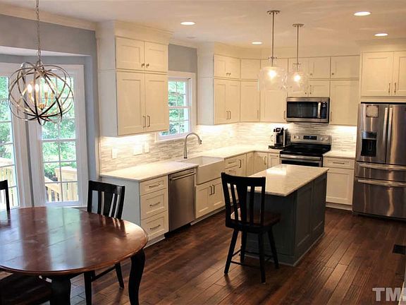 Beautiful home in desirable Oaks at Harrington Grove! 4BR with bonus! New cabinets, quartz counter tops, microwave and oven. Farmhouse sink with glass tile backsplash. Butler's pantry. Large, freestanding bathtub with separate tile shower in master bath. Large master with tray ceiling. Gorgeous hardwood floors. Bonus room with second stairway. Office/sep living room. Deck newly refinished. Garage with storage! Cul-de-sac home adjacent to rec field/trails.