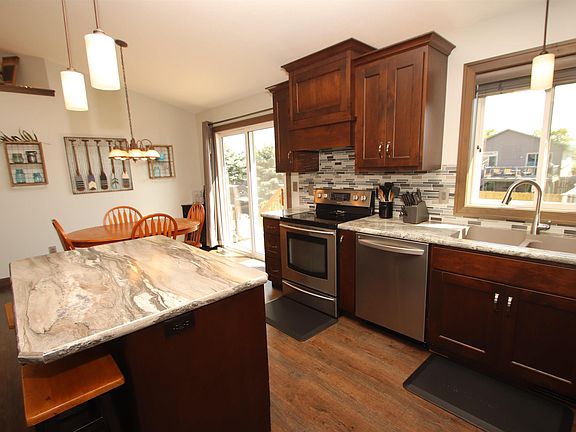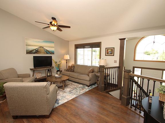 Updates, updates…new roof, gutters, exterior paint, and garage door in 2023 and new front step and back deck in 2022. Fabulous west side home has 4 bedrooms, 2 baths, and 1,919 sq. ft. 3 stall garage. Open concept main floor with vaulted ceiling, soaring 12’ foyer, and an abundance of natural light. The updated kitchen has a large island, custom cabinetry, and stainless-steel appliances. Dining area has slider to the deck, perfect for relaxing or grilling. Master suite has large walk-in closet and pass-through door to full bathroom. Secondary bedroom with walk in closet completes the main floor. Fully finished lower level has spacious family room with garden windows, two additional bedrooms with walk in closets, and full bathroom. Enjoy lush grass with the sprinkler system and space for a garden. Convenient location close to schools, parks, a pond, shopping, and interstate travel. This friendly community enjoys activities together such as trick or treating and annual party at the pond.