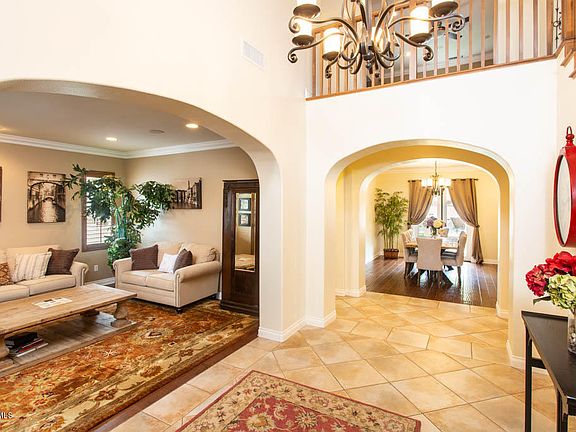 Welcome to the ultimate California dream home! This stunning entertainers pool home is just in time for the warm fall months of outdoor living. Imagine Thanksgiving dinner outside under the lighted pergola or next to the full size wood/gas burning fireplace. The private backyard is situated between 2 one story homes and features a large swimming pool with a raised cascading spa, built in gas BBQ island, stamped concrete tiered patios, outdoor speakers and professional landscaping. Inside you will find warm tone paint colors, hardwood flooring, recently upgraded kitchen with quartz counters and all new stainless steel appliances. Formal living and dining rooms and a bedroom and full bath downstairs. Upstairs boasts a large master wing with a remodeled master bath featuring tumbled travertine flooring and new marble topped vanities. A huge loft, 2 additional bedrooms and bathroom complete the second floor. Crown molding, wood shutters, ceiling fans, dual zone AC, a 1 car garage and separate 2 car garage. A true turn-key luxury home within walking distance to award winning Sycamore Canyon School (K-8), The Village Shopping Center, community parks, recreation center, and close proximity to numerous hiking and biking trails.