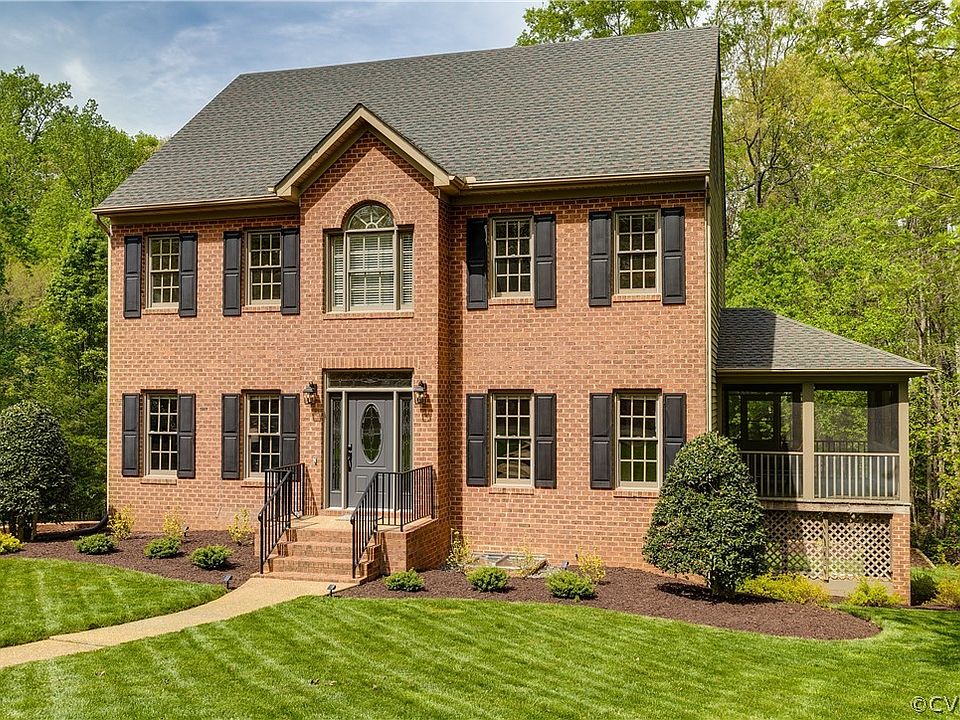 Woodlake living at its best with this generously sized home in the West Shore neighborhood. Location is key with easy access to the water front, trails, playgrounds and full host of amenities including Woodlake's pool complex, clubhouse & optional tennis and fitness centers. The house commands attention on the well manicured lot with its brick front and stately architecture. Inside you will find a spacious floor plan with 3880sqft spread out over 4 floors. Features include; Front Office/Flex Room/Formal Living Room w/wood floors; Formal Dining space with trim detail w/wood floors; Large Family Room with new carpet, gas logs, and multiple windows; Eat-In Kitchen w/wood floors, plenty of granite counter space for prep, cabinetry for storage & pantry; New carpet on entire 2nd & 3rd floors; Upstairs walk-in Laundry room; Primary suite w/ensuite bath, large walk-in closet and bright windows; 2 BR's w/ private sinks and shared jack&jill bathroom; 3rd floor oversized BR w/multiple storage closets and full bathroom; Basement area rec-room w/half bath and another BR; Oversized 2 car garage; Patio space; Huge Screened Porch; Flat & private back yard backing to a wooded creek area; Newer Roof; Tons of storage space; Easy access to Hull Street retail corridor, Powhite/288, some of Chesterfield county's best schools and of course the Reservoir! Why wait to build?!?