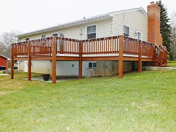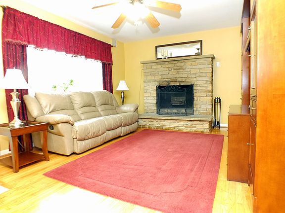 Beautifully updated Rancher, .72 acres, immaculate, warm & inviting interior, nothing to do except move in! Hardwood floors. Living room with bay window & fireplace. Bright, cheerful kitchen next to a sun-filled dining room! Soothing master bedroom with bath. Finished lower level with walkout stairs, family room, full bath, laundry room, & large finished room, so many uses! Big backyard & deck!