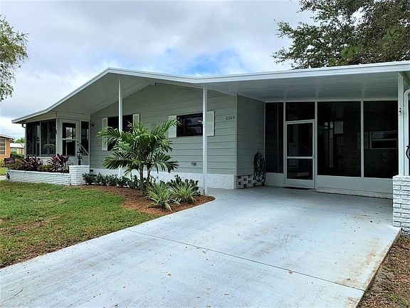 Come and live the tropical life in this amazing, completely renewed and refreshed home. This 1985 home looks like a 2021 with a list 3 pages long of total renovations. This home is unfurnished giving you a clean slate to furnish as you choose. There is brand new waterproof, laminate flooring throughout, crisp and clean freshly painted inside and out, new A/C in 2021 with warranty, new water heater 2021, along with the roof being recoated this year. There are remote fans, fireplace, Sheetrock ceilings with recessed lighting, and the windows are tilt sash, double pane with screens for starters. It has a new vapor barrier and all new landscaping. This home sits on a corner lot with lots of shade trees and lovely vegetation. The GE electrical box is approved for insurance. As you enter the brand new designed, fully equipped kitchen there are new cabinets, all new stainless steel appliances, and a beautiful new custom built island with cooktop and oven with quartz countertops and a mosaic backsplash. Also with the open floor plan there is room for dining and entertaining off the kitchen. There is crown molding through the main part of the house and select shiplap walls. Off the living area there are new sliders leading to the lanai with tile floor, and new A/C. There are sliding glass and screened windows that give you a wide view of the wildlife. There are also hardwired smoke detectors. Down the hall to the all new guest bathroom there are double vanities, tub/shower combination and ceramic tile. Right across is the guest bedroom that has a walk-in closet with built-in shelving. The master ensuite has his and her walk-in closets with shelving and the bath has the luxurious touches of ceramic tile, a spacious tiled walkin shower with glass doors located in a separate shower room, double sink vanity, plus linen closet. As a bonus, off the hallway the new full size washer/dryer was relocated inside for convenience behind a set of louvered doors to be installed. Outside there is a second screened in area at the rear of the carport for outdoor grilling and relaxing. Behind that is a storage shed for beach chairs, workbench and bikes. This perfect size home is located in the very sought after 55+ community of Camelot Lakes in Sarasota. Entering through the guarded gate you will drive past the scenic lakes and nature preserve. It is sized to make you feel like part of the community with easy living yet have a very active lifestyle. Whatever your hobby is, this community has it all included. There are 2 club houses, 2 heated pools, tennis, pickleball, state-of-the art fitness center and much more, plus a pet friendly park. Outside Camelot Lakes, your choices are also endless with festivals, sand sculpting competition, Botanical Gardens, dining, and close to two major airports. Shopping in downtown Sarasota and the famous Ringling art museum, the Van Wezel concerts and theater, not to mention the world famous white sand beach of Siesta Key just a short distance away. All listing information is deemed reliable but not guaranteed and should be independently verified through personal inspection by appropriate professionals. We cannot guarantee or warrant the accuracy of this information, measurements, or condition of any property. Lot rent is determined by the Community Office. It covers all amenities offered and other expenses including taxes, lawn maintenance, water, sewer, trash and recycling