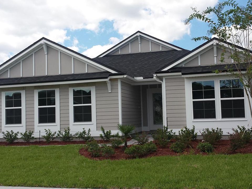 The Lantana floor plan in Tidewater features stucco and ledgestone front, gourmet kitchen with granite counters, tile floors, pendant lights, extended covered patio,bay window and double step tray ceiling at master bedroom, and stainless steel appliances. Just minutes away from I-295 and the St. John's River, Tidewater is the ideal place for new and established families alike. Choose from several distinctively designed floor plans and create a home that is a truly unique reflection of you and your family.