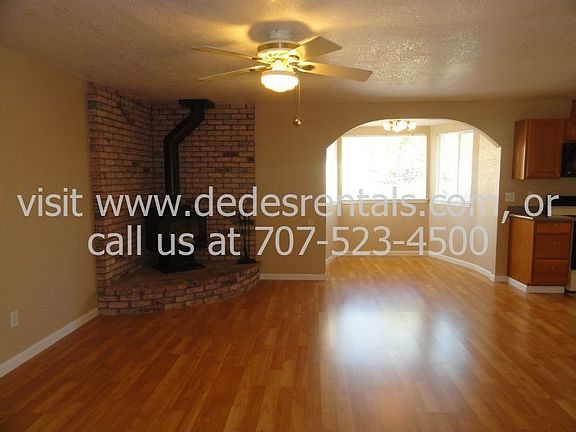 One-level home in E-Section of Rohnert Park. Nice upgrades; new kitchen counter-top and new laminate flooring. High ceilings in living room and family room has a fireplace. Includes large front and rear yard. Rear yard has a large covered deck, fruit trees and plenty of vegetables. A gardener's paradise! Submit lease term.