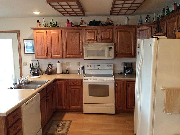 Comfortably furnished channel front home with lake view & private boat ramp! Everything you need for your Summer stay is right here...even a restaurant at the end of the road! Don't miss this opportunity to purchase such a well-built & maintained home in desirable neighborhood with cul-de-sac & park that borders the lake at the end of street. Inside you will find an open concept kitchen/living/dining area surrounded by large, west facing windows! Private patio is directly off of the kitchen & has wide open views. One bedroom, full bath and laundry downstairs. Upstairs, a second bedroom, landing, full bath & unfinished 15'X17' bonus room that could easily be made into a 3rd bedroom with an incredible view! Nice size back yard with 70' capped seawall. Large 2 car garage with attic storage. 4' graveled & lighted crawl space.