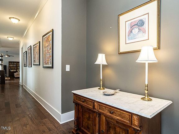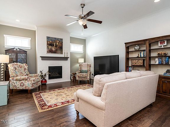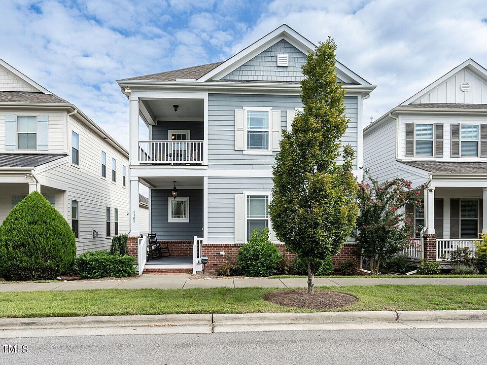 Welcome to the perfect blend of convenience, luxury and community in this stunning former model home designed for first floor living with easy access to RDU, RTP & downtown. The owner's suite features a huge bedroom, spa-style bath with dual-bowl vanity, separate tub and shower & custom walk-in closet. Step outside to your private screened porch to enjoy alfresco dining, morning coffee or just hanging out. The chef's kitchen has a huge island with breakfast bar, stainless appliances, granite counters & custom lighting. The first floor is completed by a half bath, living room with fireplace, dining area, laundry room, engineered hardwood floors and mud room just inside from the garage. Upstairs is designed with two guest beds, full bath, covered balcony and storage. 2-car garage & street parking. Residents have access to an amazing pool, fitness center, a lively dog park, club house and a community garden. Just a short walk to find your local brewery, coffee shop and other retail. The Goddard School, elementary and middle schools are all within walking distance. River Bend Park is accessible with direct Neuse River Trail access, paved kayak loading/unloading and launch, and a playground. The best part of all? The HOA covers ALL lawn care! Don't miss this one!