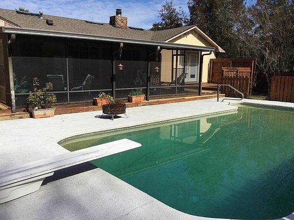 Have your own piece of paradise! Clean 3 bedroom 2 1/2 bath house with a large great room with fireplace and updated open kitchen with granite counter tops . Privacy fenced back yard. Large screened back porch overlooking inground pool, then Ocean Pond! Plenty of room to get sun from the decks out back. Outdoor shower. Many fruit trees including, cumquat, grapefruit, lemon, peach and pear. Enjoy the scent in spring of citrus blossoms. Back yard also features a pine apple garden, butterfly garden, mature Lilly bed, jasmine patch, as well as many flowers including cannas, roses, morning glory and much more. 12x18 Storage room/workshop. The adjoining lot is for sale also for $28,900.00!