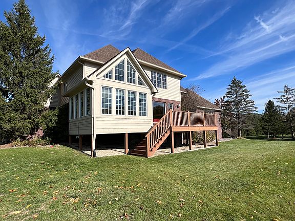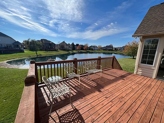 Welcome to this stunning Carmel custom home located on a cul de sac in Delaware Trace. Immerse yourself in the beauty of the surrounding nature as you enjoy the stunning views of the pond from the beautiful vaulted 4 season porch and from various vantage points within the home. The tranquil setting offers a sense of calm and serenity, providing the perfect backdrop for everyday living and entertaining. A new roof in 2020 comes with a transferable warranty, as well as newer furnace and a/c upstairs and furnace on the main level. These updates provide peace of mind and ensure comfort throughout the seasons. Office/study has beautiful custom built in's and glass french doors. Formal Dining has a tray ceiling. Two story entry and a great room with floor to ceiling windows. Family room has a cozy fireplace and is open to the breakfast area and kitchen which features a brand new gas oven range and built in oven from Ferguson and a newer double stack dishwasher, plus beautiful countertops. This home has an impressive full finished lower level, featuring a full wet bar, a rec room area and a theater area, plus a 5th bedroom and full bath. Delaware Trace has a trail that leads to Prairie Meadow Park on Hazel Dell that is a 5 acre prairie park with nature and walking trails. The neighborhood has wonderful amenities with inground pool and pool house.