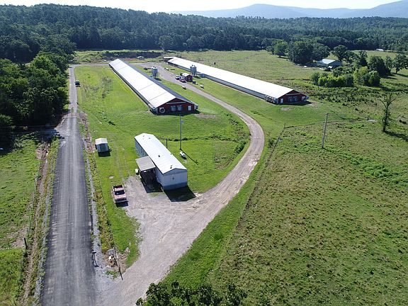 Ready to start farming? Wanting to expand? Come look into an affordable farm just 50 minutes south of Ft. Smith in a favorable setting at the end of a paved road. Two 43x510 barns with OK Foods produce $115,000 annually. A few updates with OK Foods and voila, you are in the chicken business. Upgrades like LED lighting, RollSeal doors, tunnel doors, Platinum Plus controllers with enhanced backup & communication, extra attic insulation, new vent doors and more, says ''call and set an appointment to look.''