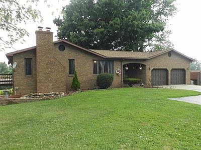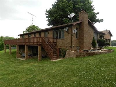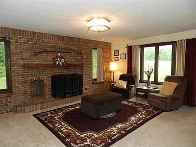 Brick home sitting on 4.96 acres with a walk out basement as well as a 32x56 pole barn with concrete floor, 10' door, woodburner, 1/2 bath, insulated, as well as stocked pond on the property. Space, country, huge deck off of the master bedroom and dining room overlooks the country side. You love the covered breezeway and attached 2.5 car garage. Master bedroom just had carpet installed. You will love the brick wall that accents master bedroom as well as master bath. Basement walks out and comes with a large bath, walk in closet, and extra large rec room or could be a 4th bedroom and family room. Basement is 2/3 finished and offers a crawl space with a walk out that is 4-5 ft tall. Lots of storage space in this home. Average Monthly Electric Bill: $242.97