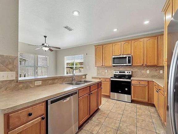 This is a 4 bedroom, 2 bathroom home in Killeen with 2-car garage, tile and wood laminate floors, ceiling fans, storage building and washer & dryer connections. Kitchen features all stainless steel appliances including dishwasher, refrigerator, microwave and electric range. Primary bathroom features dual vanity sinks with garden tub and walk-in shower. Small pets are allowed with non refundable $300.00 Pet fee. Contact JWC for more information.