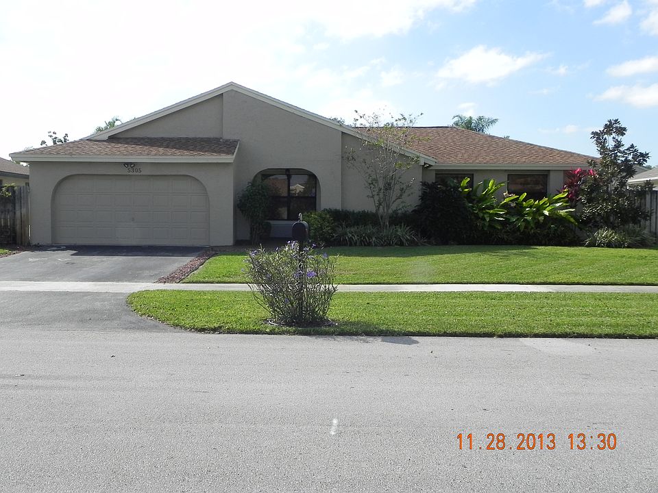 Great home in the heart of Cooper City. Located within walking distance to Griffin Elementary School and park. Recently renovated including: All wood kitchen cabinets with soft closing drawers, granite C/T and S/S appliances (with pantry addition), master bath completely remodeled, second bath with upgrades, 20x20 diagonal tile in all living areas and Bamboo wood flooring in all bedrooms; all new doors, hardware and 5" baseboards. Lighting updated throughout home. Fans in all rooms. AC, solar water heater, washer/dryer, and appliances all within 3 years old. Roof replaced in 2006. Landscaping completed in front and back yards. Large covered patio in backyard.