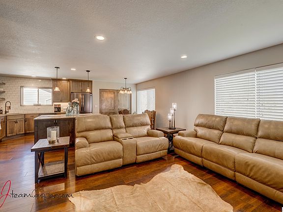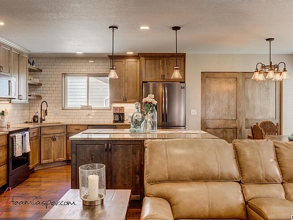Everything has been recently updated so almost like moving in to a new home with established landscaping, vinyl fencing, large storage shed, 28' deep 2 car garage, loads of RV parking and sprinkler system. Open kitchen with large island, spacious pantry, granite counters and black stainless appliances make this the epicenter for this home built for entertaining. Additional Amenities include 2 gas fireplaces, central air, large patio outback, no neighbors to the rear, on demand water heater, under cabinet