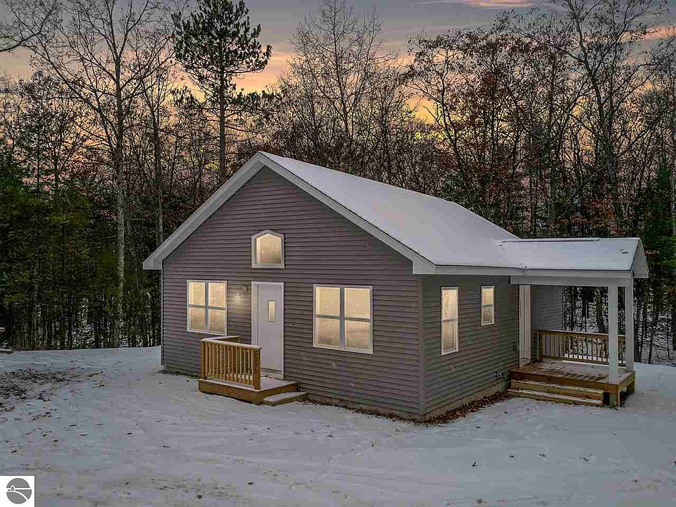 Recently built cottage style home near the lakes with State land out your back door. Peaceful setting across from Rennie Lake with Bass Lake access via the State land. Large acre + lot with plenty of room for a garage or pole barn. Features include cathedral pine ceiling, tons of natural light, covered porch overlooking the woods, luxury vinyl plank flooring and easy access to town. Only minutes to downtown Traverse City and all the area's amenities.