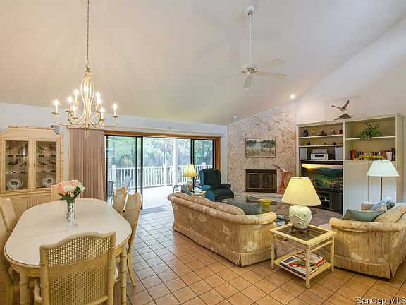 Lovely near beach home, great location, next to last home on street near beach walkway yet only 2 homes away from community pool and tennis. Split plan with tile floors throughout, coral rock fireplace and cathedral ceiling great room. Large redone kitchen with granite counters, new range and microwave, pantry and adjacent den/office Large. master suite with huge bath; dual vanities, large shower and whirlpool tub. All bedrooms very good sized, huge screened lanai. very large garage, storage and hot tub with outdoor shower at lower level. Twin a/c units, appliance contract with Home Tech, chair rail and new garage doors. Easy to show and offered mostly furnished