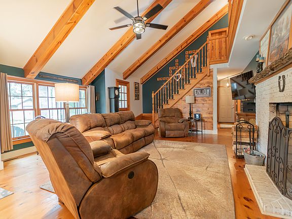 INCREDIBLE VALUE and IMPECABLY MAINTAINED! This is a one of a kind, unique home offering a SPACIOUS, wooded lot with NO BACKSIDE NEIGHBORS and an abundance of privacy surrounded by nature. Conveniently located near LAKE DALE and The Fairways GOLF COURSE, this home features 3 bedrooms, 2 bathroom, 2.5 car garage, FENCED IN YARD, over 2000 finished square feet, full unfinished basement, and additional 800+ square foot unfinished attic. THE MAIN LEVEL: Features an OPEN CONCEPT living area with a brick fireplace, TWO STORY CEILINGS, and some of the most unique, oversized hardwood flooring you'll find. The kitchen has been updated with real wood cabinetry, granite countertops, backsplash, stainless appliances, and spacious island. There is also a main floor formal dining room. Off the living area is a SUNROOM, overlooking the gorgeous yard. There is also a MAIN FLOOR MASTER BEDROOM WITH A FIREPLACE, main floor 3/4 bathroom with walk-in shower and a MAIN FLOOR laundry room.SECOND LEVEL: Features two spacious bedrooms, freshly painted, with access to a FULL JACK-N-JILL bathroom with double vanity sinks. Upstairs also offers a huge, unfinished attic area for storage or future living space.BASEMENT: There is a full, unfinished basement for storage or excellent spot for future, finished living space.Other features included an oversized 2.5 car garage, HEATED STORAGE SHED, fenced in yard, remodeled exterior, spacious foyer, two-tier exterior back deck, beautiful landscaping, and much much more.