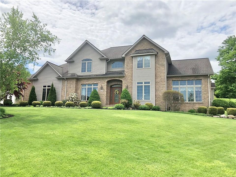Meticulous! Well taken care of home built by John Finazzo. This Harborcreek home boasts open concept first floor living with an enormous kitchen space & formal dining room with hardwoods throughout. Master bedroom with cathedral ceiling comes with an attached master bathroom & walk-in closet! There is so much natural light through the massive windows which also provide an incredible distant view of Lake Erie! Entertain or relax on the outdoor patio with a built-in fireplace! First floor laundry!