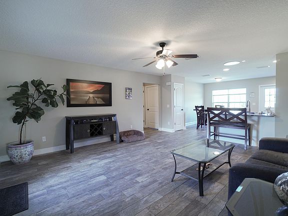 Great three bedroom two bath home on over an acre, conveniently located to i-95. Wood-look tile is carried throughout the open kitchen and living area which is tucked between the split bedrooms. A large lean-to has been built on the left side of the property and provides great coverage to store your lawn mower and other toys while keeping the garage clear for your car! The large backyard has two fence lines allowing pets to stay safely in one area while a secondary gate grants plenty of space for a vehicle to pass by on your way to the the shared pond access.