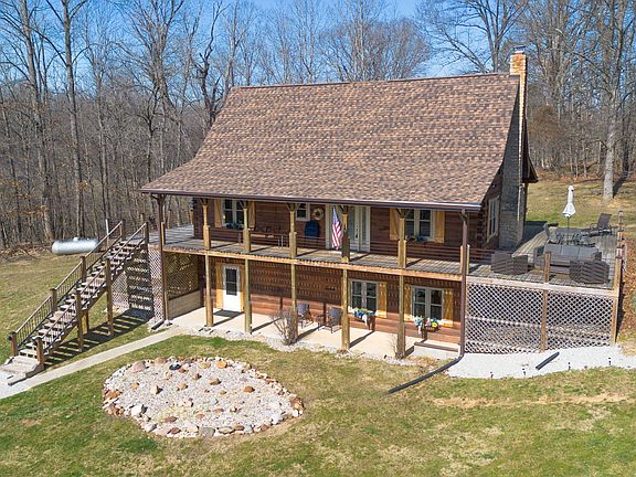 Welcome to your dream country retreat! Nestled on 8 acres of picturesque woods and pastures, this stunning 3000sqft log home offers the perfect blend of rustic charm and modern convenience. Step inside to discover a beautifully updated interior boasting spacious living areas, perfect for entertaining or simply unwinding by the cozy fireplace. The kitchen is a chef's delight, featuring granite countertops, stainless steel appliances, and ample cabinet space. See features sheet for tons of updates including roof, windows, AC, fencing and much more! With its 60x80 concrete floor pole barn, this property is a haven for horse lovers, offering plenty of room for tack, more stalls, equipment, and vehicles. The expansive grounds offer trails and endless possibilities for outdoor recreation, gardening, or simply enjoying the tranquility of nature. Whether you're seeking a peaceful country retreat, a horse lover's paradise, or a versatile property with endless options, this is the place for you. Don't miss your chance to own this slice of paradise - schedule a showing today!