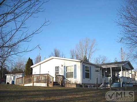 Well kept one owner Redman double wide home on a 5 block crawl space with over 211 ft of water frontage. Open living area with cathedral ceiling in living room & door walls to a covered waterfront deck, newer carpeting in living room & master bedroom with walk in closet, master bath has garden tub, shower & skylight. Detached garage is insulated & panneled & has 3/4 bath & storage room. 24x48 Pole barn across the street has a 16x24 insulated & drywalled work shop with natural gas. Over 211 ft of water frontage,seawall & patio. Last house at the end of the road offers privacy.