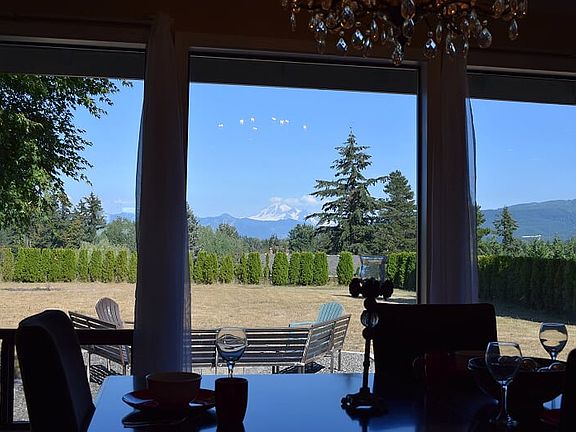HUGE PRICE REDUCTION! Breathtaking Mt. Baker views are the focal pt. of this thoughtfully updated home. Situated on a shy 5 acre parcel with fenced pasture, outbuildings, shop, and a circular drive for ease of access. Open living space, large rec. room W/ pool table. Main floor master W/ en-suite, plus 3 BD & a bonus, 3.25 BA, 2 laundry rooms, 2 FP up & 1 down, vaulted ceilings, wet bar, & poss. MIL potential W/ separate entry. 4 car garage, mature landscaping.