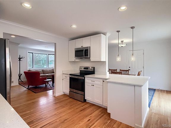 Lovely ranch home with large landscaped yard in highly desirable Virginia Village. Fully remodeled 5 years ago with 4 true bedrooms and 3 baths. This home features real hardwood floors, quartz counters, stainless steel appliances and an open and bright concept. The living room has a bay window, all the windows in the home are newer and the main interior paint was just done. The bedrooms have custom plantation shutters and light fixtures. The master bedroom closet is a walk-in with a custom organizing system. You will love the fully sprinklered yard with a new pergola, privacy fence and large patio. The full basement is a great space for entertaining and there is plenty of room for a game table and hanging out. Also downstairs, is a nice sized bedroom with egress window, full bath and laundry closet. There is a one car garage that comes into the home via a conveniently located and large mudroom/storage room. Newer AC, roof, furnace, radon mitigation and windows make this home move in ready! All appliances and washer/dryer included. Walk to Esters, nearby parks and the high line canal!