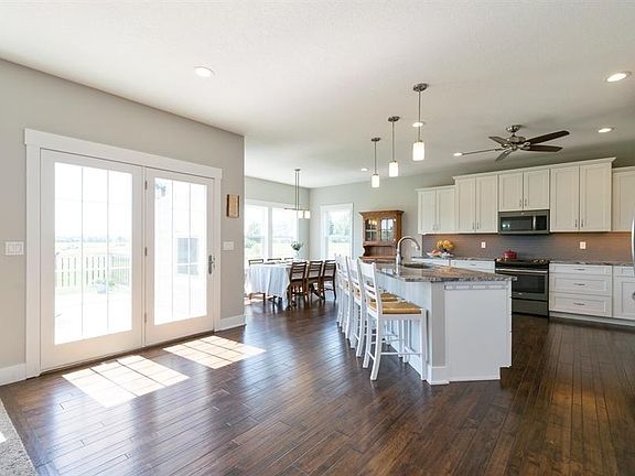 Spacious custom home in idyllic Cameron Estates neighborhood. Built in 2015, this 5B/3.5BA home features inviting spaces & functional characteristics throughout. Main floor features open concept kitchen w/granite countertops, family room w/ fireplace & east-facing windows overlooking backyard. A mudroom is conveniently connected to attached garage & sunny office space is right off the kitchen. Head upstairs to find a cozy loft w/ built-in bookshelves & window seat, 3 bedrooms, bath, & laundry. Master suite upstairs has tiled walk-in shower & huge WIC. Newly finished basement has ample storage, playroom, & add'l bed & bath. Lots of options to enjoy the 1-acre yard--grill on the deck, garden, or watch the sunset on the front porch. Ideally located in quiet subdivision just minutes from town.