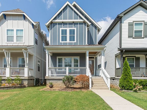 All this at a new price! Fabulous walkable West Nashville Nations neighborhood with shops & dining. This one owner home is open concept w a bed down, primary up, bonus and 3 porches! Vaulted ceiling in primary with a stunning bathroom and double closets will WOW! Lots of upgrades....coffered ceiling in dining area, real sand and finish hardwoods throughout, tile in baths, wood shelving in closets, Levelor blinds, both rear porches have storage, fully finished two car garage and permanent gas line installed for grill and future LR fireplace Chefs kitchen with stunning granite, stainless appliances that remain, pantry, beautiful backsplash, & tankless water heater. Privacy fenced rear yard & outdoor living areas makes this one stand out! Just a 10-15 minute drive to Vanderbilt.